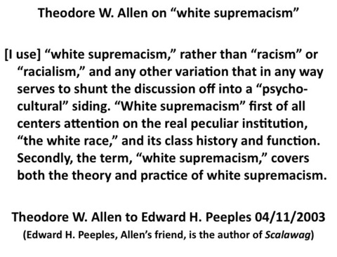 Theodore W. Allen on “white supremacism” rather than "racism"