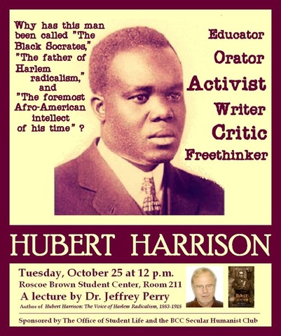 On Tuesday, October 25, 2011, at 12 noon, Jeffrey B. Perry will discuss Hubert Harrison in an event sponsored by the Center for Inquiry-New York City, at the Roscoe Brown Student Center, Bronx Community College, 2155 University Avenue, Bronx, N,Y, 10453.